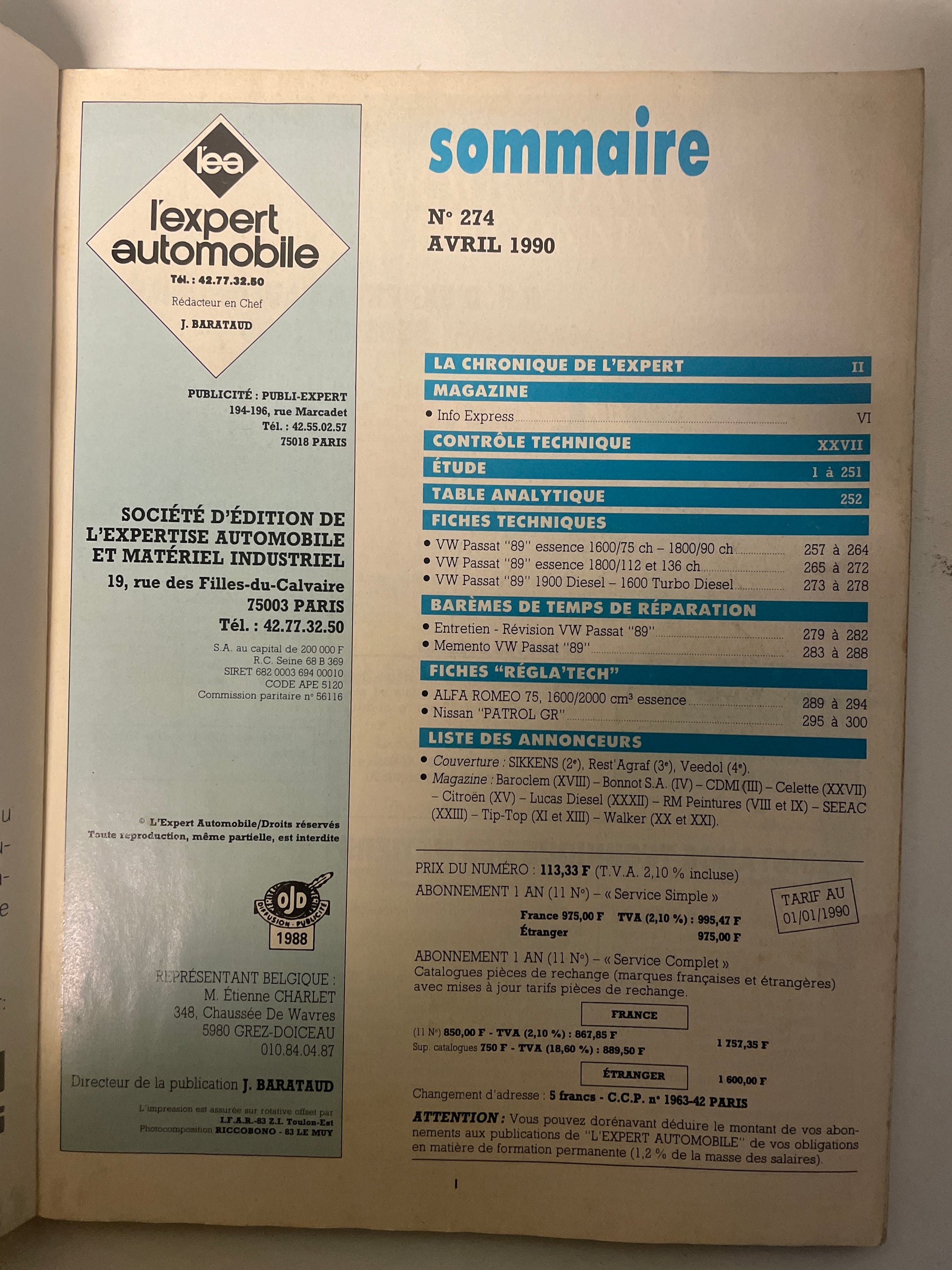 Revue technique VOLKSWAGEN PASSAT « 89 »